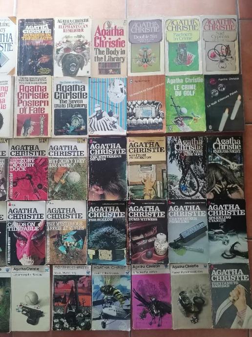 Knjige AGATHA CHRISTIE, 69 KNJIG, naslovi vidni na slikah, žepnice v angleškem jeziku, broširane, solidno ohranjene, samo v kompletu 69 knjig po 1 eur skupaj 69 eur.