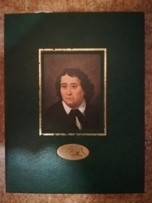 V škatli zelene barve v obliki knjige z sliko Franceta Prešerna na prvi strani