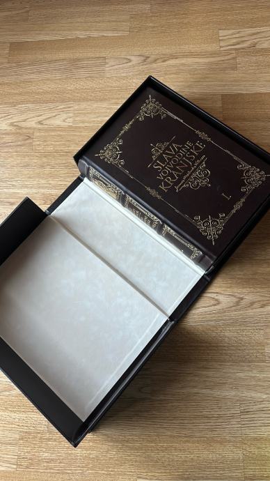 Lepo ohranjena (notri kot nova) knjiga v šatulji z zlatotiskom v trdi vezavi. Prvi del zbirke Slava vojvodine Kranjske