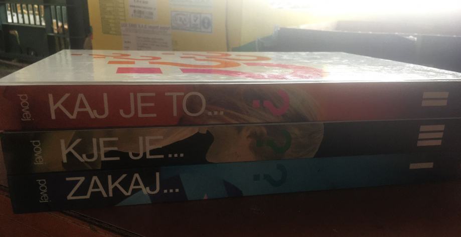 Ugodno prodam zbirko treh otroških knjig, Kaj je to, Kje je ... in Zakaj. Za več info pokličite 031/355-360, prevzem možen v Trbovljah. Možen tudi prevzem v Ljubljani ali Luciji na Obali po predhodnem dogovoru.