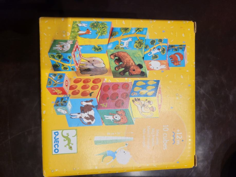 Prodaja se nov Djecov komplet kock Moji prijatelji, izdelan iz debelega in trpežnega kartona, vabi malčke, da raziščejo gnezdenje ali zlaganje škatel in ustvarijo svoje prve stolpe – podirajo jih za neskončno zabavo! Kocke imajo različne ilustracije, ki spodbujajo logično razmišljanje. Otroci lahko kocke združujejo in zaporedoma razvrščajo v različne teme, od ujemanja živali do gradnje stolpa s številkami ali ustvarjanja velikanskega drevesa!