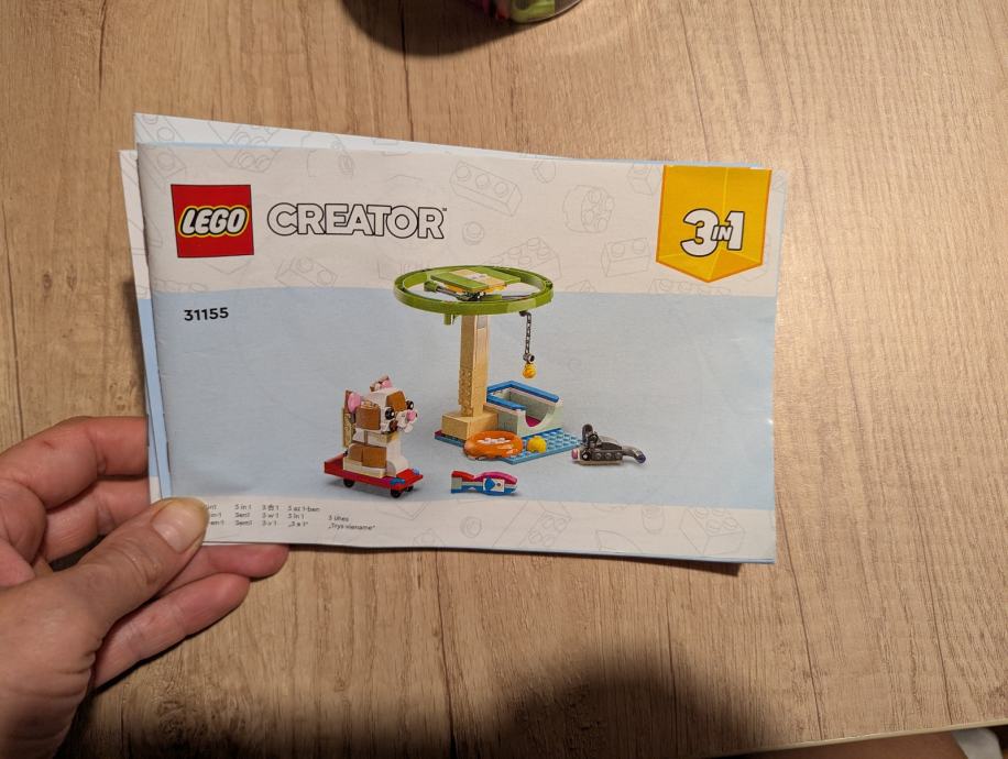 V setu je interaktivna hišica za igro, v kateri lahko en hrček teka po vrtljivem kolesu, drugi pa se spusti po toboganu. Igrišče za hrčke s kulskimi dodatki, med katerimi so rezervoar za vodo, pnevmatika, viseči zvonček in skleda s hrano. Komplet LEGO® Creator podarja otrokom 3 različne majhne živalske igrače, ki jih sestavijo iz istih kock. Sestavijo lahko hrčkovo hišico za igro, nato igrišče za mačko z vrtljivim kolesom in rolko ali pasjo uto s toboganom in kulskimi igračami. Kompleti Creator 3v1 so odlična LEGO darila za otroke, saj so v vsaki škatli 3 različni modeli za ustvarjanje. Otroci bodo z veseljem sestavljali znova in znova. Kompleti 3v1 jih bodo osrečevali več ur in ponujajo veliko modelov, ki bodo pritegnili otroke z najrazličnejšimi strastmi od superhitrih vozil in osupljivih živali do podrobnih mestnih prizorišč.