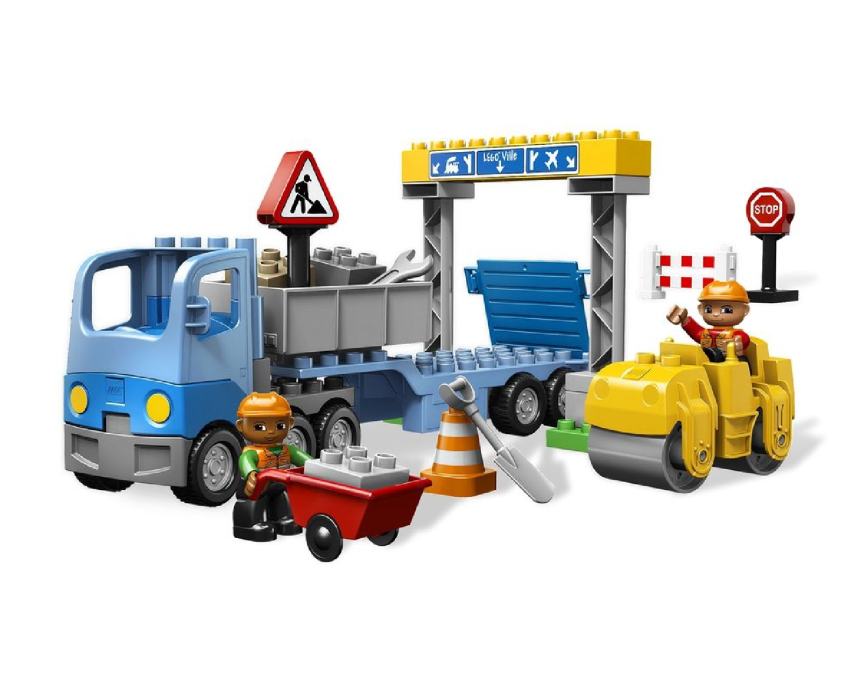 Zraven je še skoraj popoln komplet Duplo Delo na cesti, kjer pa manjka ravno kamion, zato sta seta skupaj (prikolica se priklopi na kamion za vleko konj).