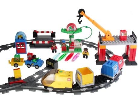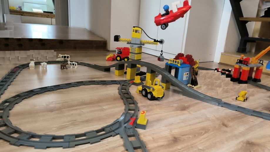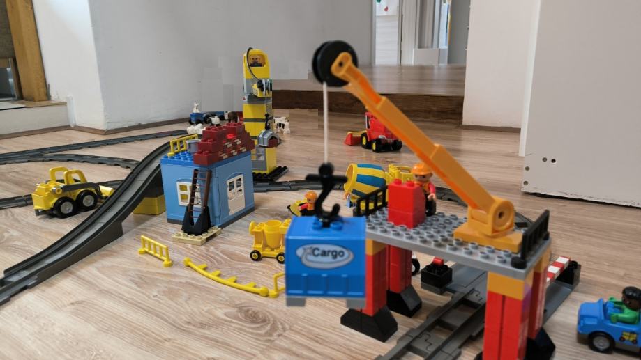 Prodamo odlično ohranjene Lego Duplo kocke, ki vključujejo set z vlakom na baterije (3255) in konstrukcijski set (4988):