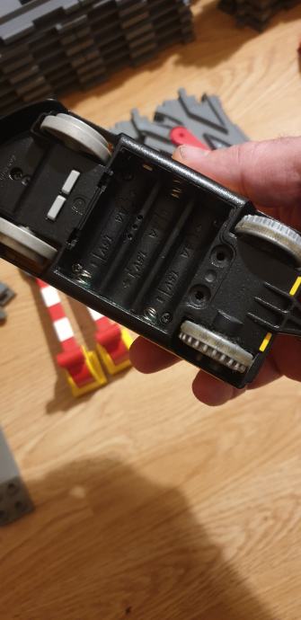 - "inteligentna" lokomotiva z dvema voznikoma (vsak ima svoj stil vožnje - jeziček na nogi), delujoča, manjka ji pokrovček baterij spodaj