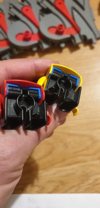 - rumeni večji tovornjak in zeleni avto (polomljena 1 guma) z možnostjo vijačenja koles, izvijač priložen