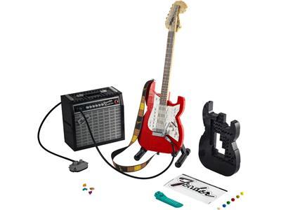 Komplet vključuje knjižico z zgodovinskimi zanimivostmi o kitari Fender® Stratocaster™, informacije o oboževalcu modela in oblikovalcu LEGO® ter podrobna navodila za sestavljanje.