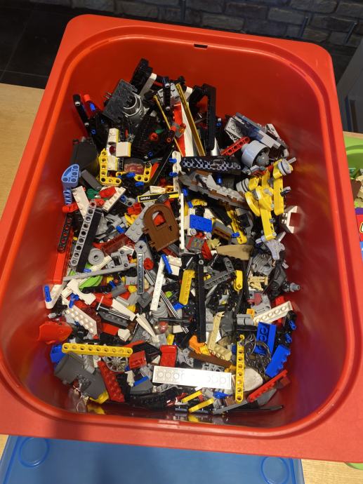 12 kilogramov lego kock (pretežno LEGO technic) razporejenih po škatlah, delno sortiranih, delno sestavljenih, praktično celoten velik paket (LEGO friends) pa nedotaknjen še v vrečkah in s priloženo knjigo načrtov. Cena je približno 25 € za kg, oz. 200 € za vse skupaj, kar bi pomenilo 16,6 €/kg. Lokacija Ljubljana Šiška-Podutik, informacije na tel. 040 532247, NOVAK