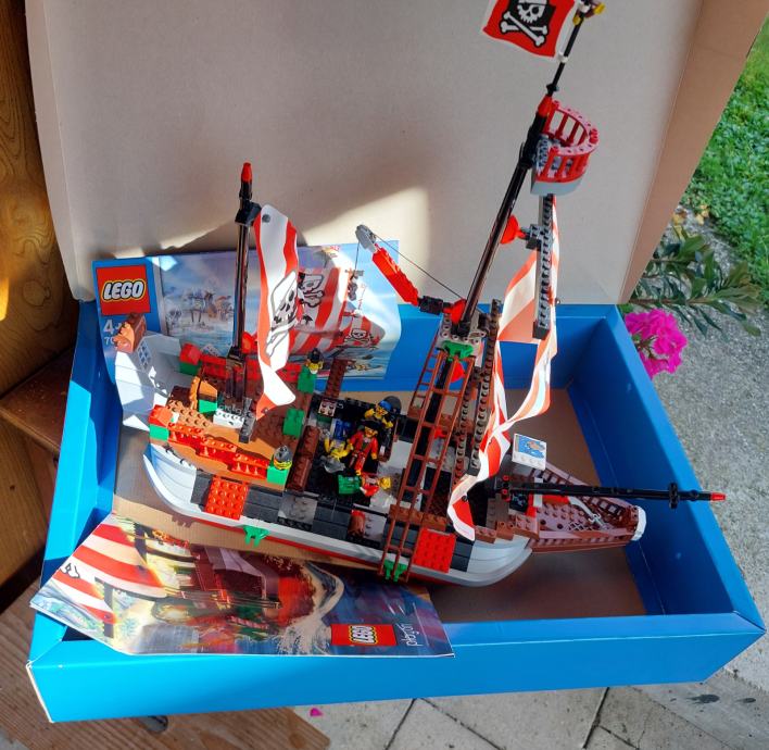 Prodam Lego set 7075 Captain Redbeard's Pirate Ship. Manjka nekaj kock (zelena kapa pri eni figurici, ena zastava in ena spica)