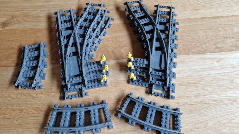 Prodajam 3 rabljene sete kretnic za Lego kocke št. 4531 Manual Points. 6x kretnice + 6 krivljenih tirnic.