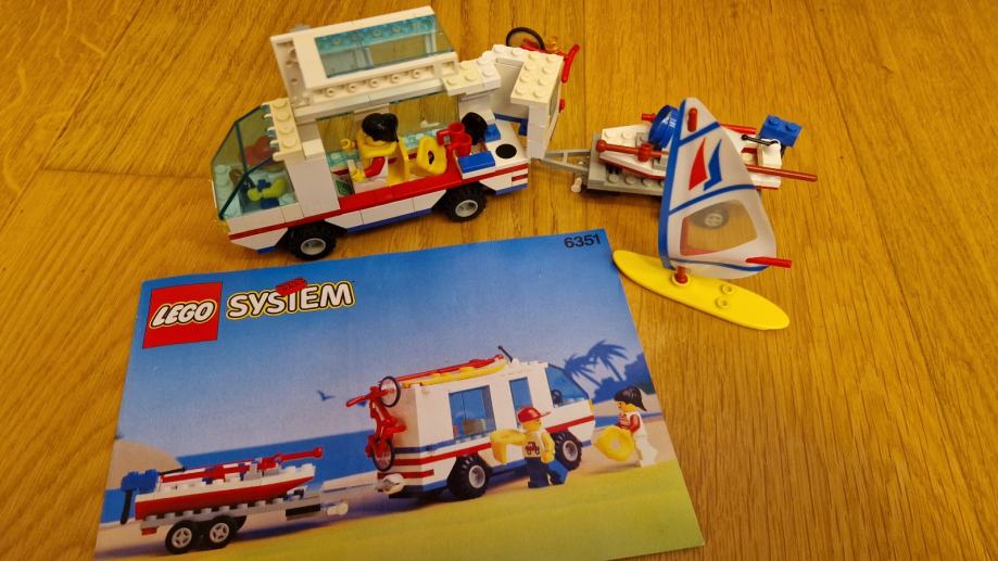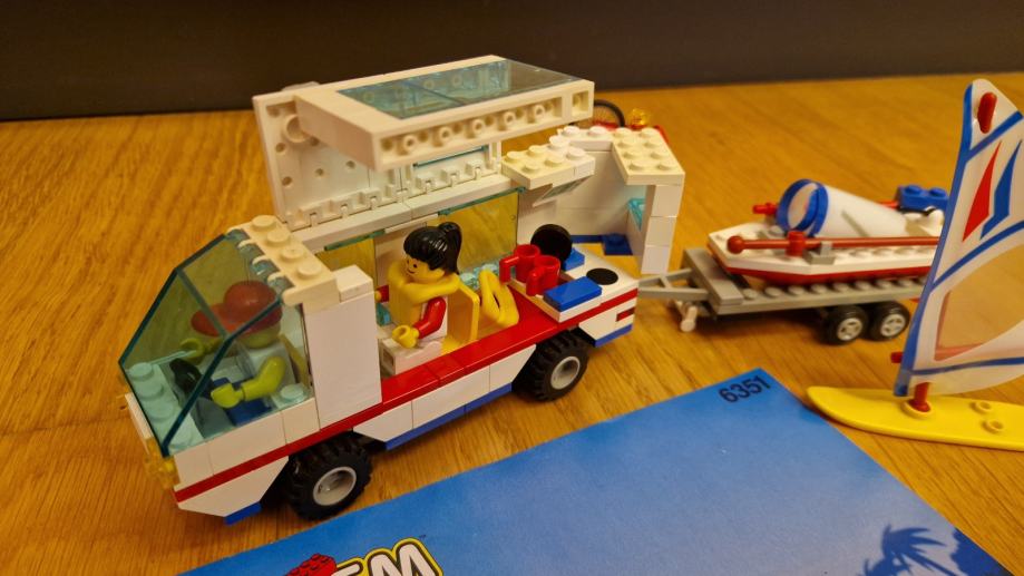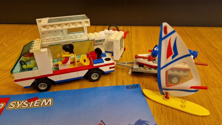 Prodam rabljen set Lego kock Lego System 6351 Surf N' Sail Camper z navodili, vendar brez škatle. Manjkata gumici za jadri, ostali koščki so priloženi.