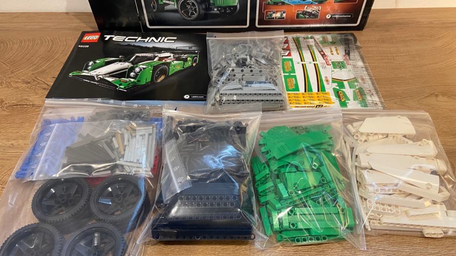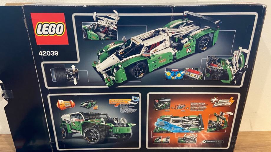 Prodam rabljen set Lego Technic 42039 24 Hours Race Car, z originalnimi navodili in originalno embalažo. Priporočena starost: 11-16 let. Ta LEGO komplet je bil izdan leta 2015 in je od konca decembra 2016 EOL (End of Life). Set je sestavljen iz 1219 delov. Deli seta brez navodil in škatle tehtajo cca 1284 gramov, skupna teža seta je cca 2100 gramov. Vsebuje podrobno izdelan motor V8 s premikajočimi se bati, odpirajoča se vrata v obliki galebjih kril, vsestransko neodvisno vzmetenje, delujoče sprednje krmiljenje, visoke blatnike ter odpirajoč se pokrov in pokrov motorja. Model 2 v 1: predelan v SUV Racer. Nadgradite s kompletom 8293 LEGO® Power Functions (ni vključen) za delujoče LED žaromete ter motorizirana vrata v obliki galebjih kril in pokrov motorja. 24-urni dirkalni avtomobil meri več kot 10 cm v višino, 48 cm v dolžino in 21 cm v širino. SUV Racer meri več kot 16 cm v višino, 39 cm v dolžino in 19 cm v širino.