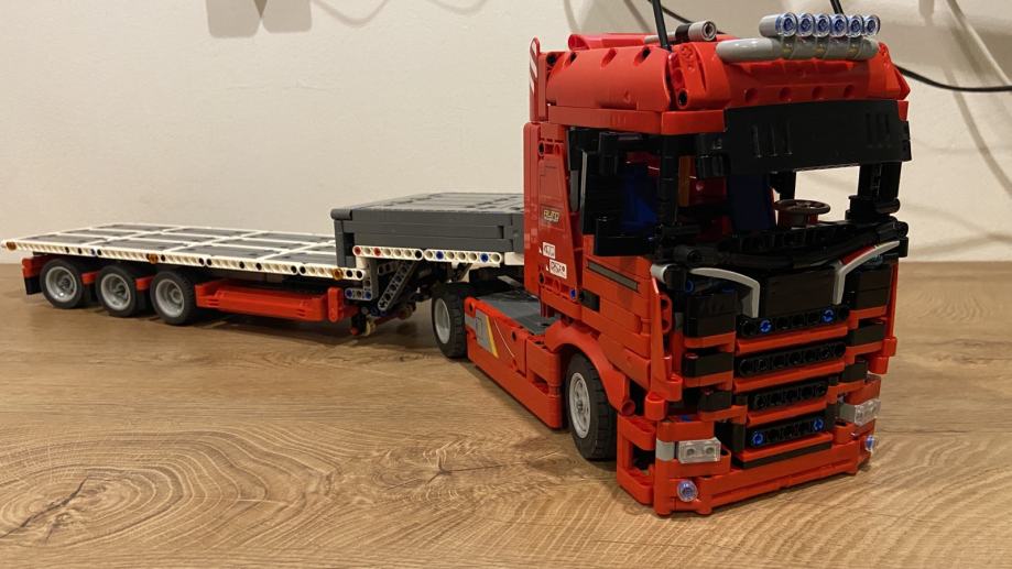 Prodam rabljen set LEGO Technic 42098 Car Transporter z originalnimi navodili in originalno embalažo. Zrave dobite tudi navodila za Scania tovornjak z prikolico, ki ga je možno sestaviti iz istih kock. Priporočena starost: 11+ let. Ta LEGO komplet je bil izdan leta 2019 in je od konca decembra 2020 umaknjen iz proizvodnje (End of Life). Set je sestavljen iz 2493 delov. Tovornjak za prevoz avtomobilov ima premične krove za avtomobile, zadnjo rampo za nakladanje in razkladanje, način za zavarovanje vozil med prevozom in nagibno voznikovo kabino, ki vam omogoča dostop do podrobnega motorja V6 z gibljivimi bati. Vključuje tudi modri avto z delujočim krmiljenjem in motorjem V8 s premikajočimi se bati. Avtotransporter ima klasično rdečo, sivo in črno barvno shemo in je opremljen z nalepkami za dodatne podrobnosti. Spustite krov, zapeljite na prikolico, pritrdite transportno ključavnico - in pripravljeni ste na pot! Realistične značilnosti in funkcije za ure igranja in gradbenih izkušenj. To igračo za prevoz avtomobilov lahko uporabljate s kompletom LEGO® Technic "Chevrolet Corvette ZR1" (42093). Avtotransporter je visok 22 cm, dolg 86 cm in širok 13 cm. Moder avto je visok 8 cm, dolg 27 cm in širok 12 cm. Tovornjak B-model LEGO Technic s razstavnimi avtomobili meri več kot 14 cm v 0višino, 87 cm v dolžino in 15 cm v širino.