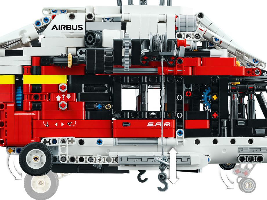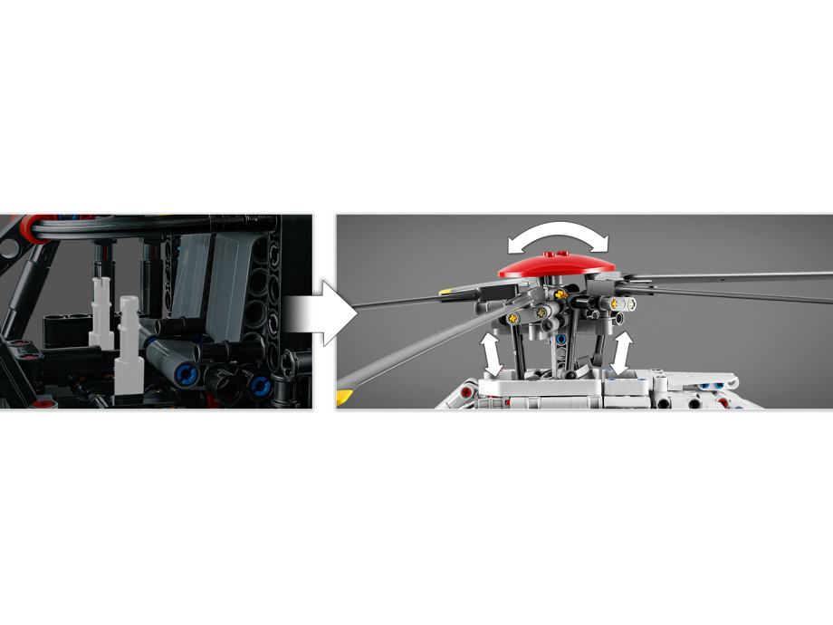 Otroci, stari 11 let in več, lahko raziskujejo funkcije helikopterja za iskanje in reševanje z reševalnim helikopterjem LEGO® Technic Airbus H175 (42145).