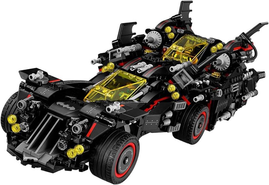 Združite se z liki iz FILMA LEGO® BATMAN Batman™, Batgirl™, Robin™ in Alfred Pennyworth™ (v Batsuitu), da naredite Superzlobnežem štirikratne težave z The Ultimate Batmobile! Ta osupljivi model je razdeljen na 4 ločena vozila: Batmobile, Batwing, Bat-Tank in Batcycle. Batmobile je opremljen z zložljivimi ojačevalci in 4 žičnicami, medtem ko ima Batwing zložljiva krila in 2 vzmetnimi strelci. Batcycle ima zložljiva kolesa in močno oklepen Bat-Tank se ponaša z 2 skritima hitrima strelcema s 6 žeblji. Komplet vključuje tudi vrteči se netopirski signal s svetlobno kocko LEGO®, leteči disk Polka-Dot Mana ter 8 mini figur z izbranim orožjem in dodatki, ki navdihujejo neskončno igro vlog.