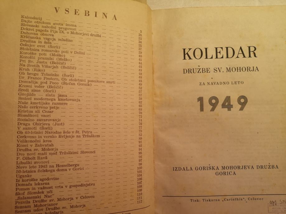 Koledar Družbe sv. Mohorja za navadno leto 1949, 112 str.