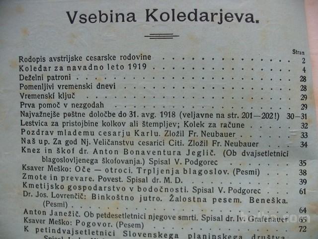 Poleg številnih zanimivosti iz leta 1919, ki so navedene tudi na priloženem kazalu, so v koledarju tudi