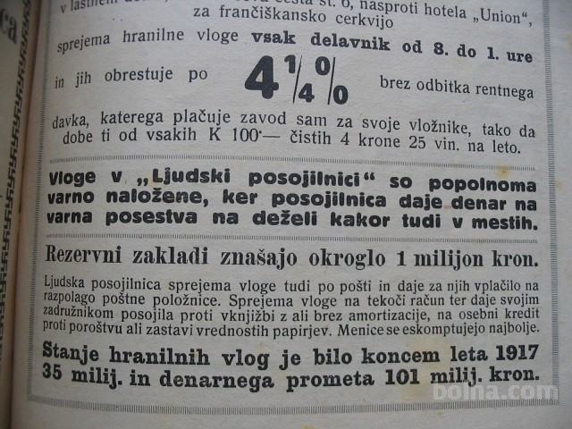 ponudbe oz. reklame za razne izdelke in storitve ter slike in podobe posameznih stavb, npr. v Ljublajni, iz takratnega obdobja, cenik poštnih storitev v letu 1919, ...