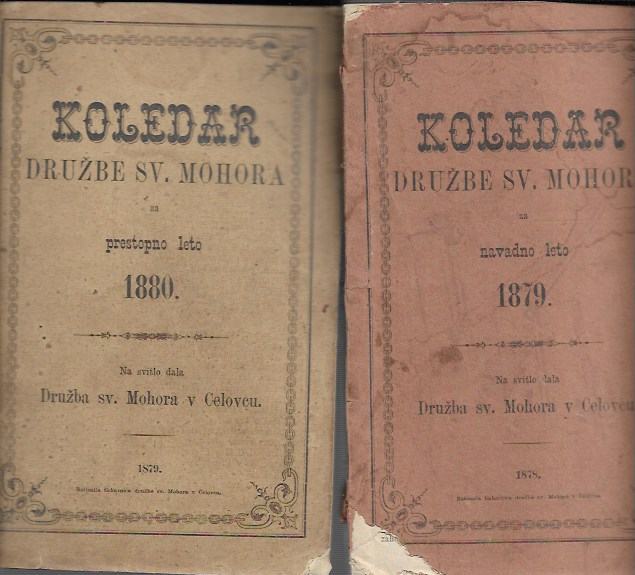 Naprodaj je 7 Mohorjevih koledarjev med leti 1872 in 1883, cena za kos je 20 do 25 eur.