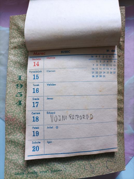 Namizni koledar ima zadaj kartonski postavek in je popoln z listi, srednja ohranjenost.