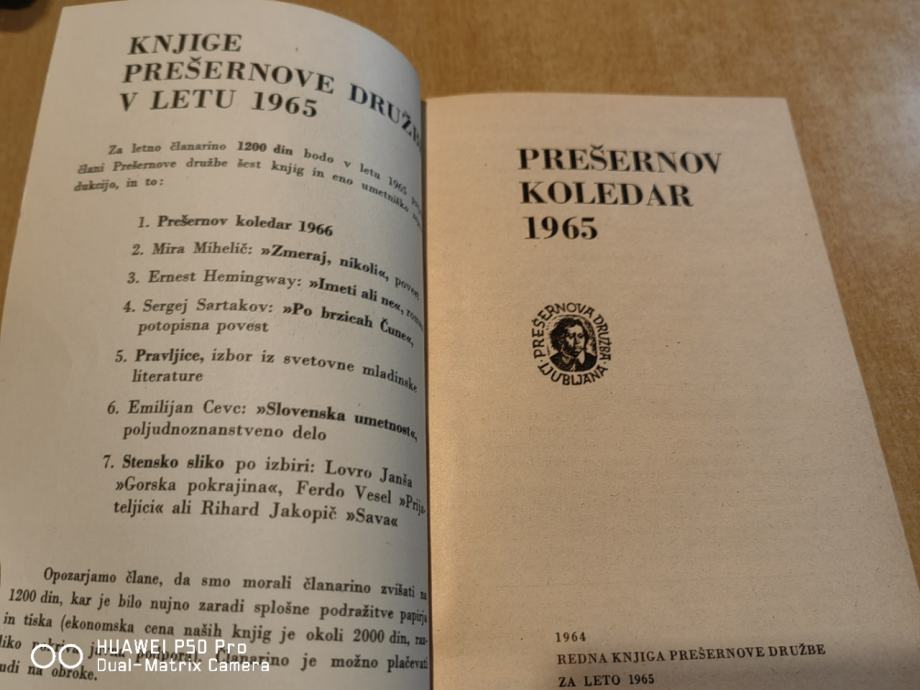 Prešernov koledar 1965 - letopis, lepo darilo *