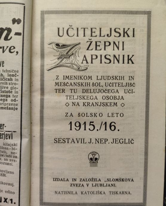 Učiteljski žepni zapisnik z imenikom ljudskih in meščanskih šol, učiteljišč ter tu delujočega učiteljskega osobja na Kranjskem za šolsko leto