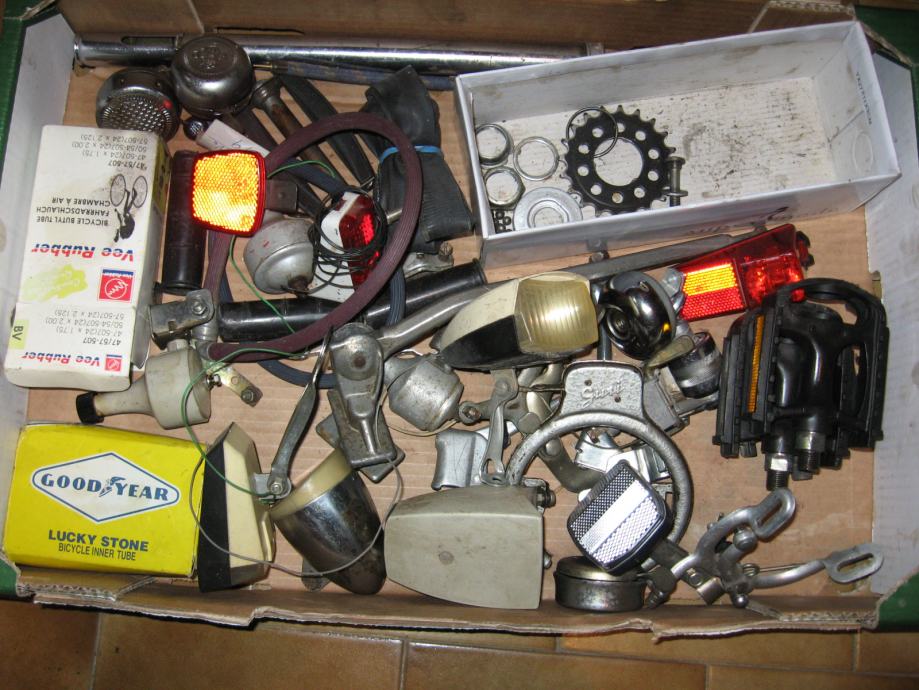 Deli za starodobna kolesa, luči, zvonci, pedala, diname, ključavnice, pumpe, nosilci za pumpe, kolesa 28 col, belance, ročaji, strehe, sedeži , torbice, orodje staro, nogice itd. ugodno prodam. Informacije 031 312 059