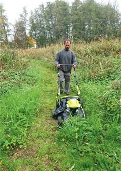 Kosi, mulči nizko in visoko travo za strmi teren. Pogljete več video - linki.