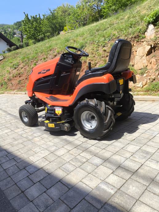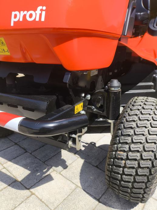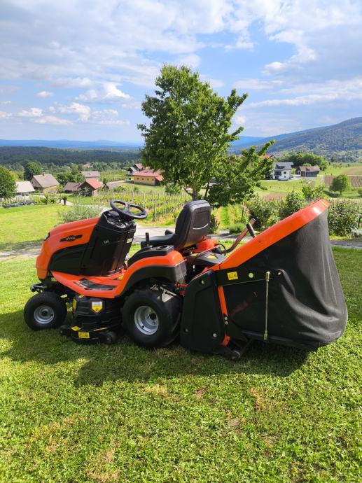 Zelo ohranjen in kvaliteten z profi kosiščem ki ima 3 nože motor je kawasaki 2 cilindra z oljno črpalko,pogon ima močan hydro tuff torq ,poleg je koš ki lahko pobira tudi večjo travo ali mokro ne da bi se štopal zraven priložim še orginal pnevmatike in platišča.