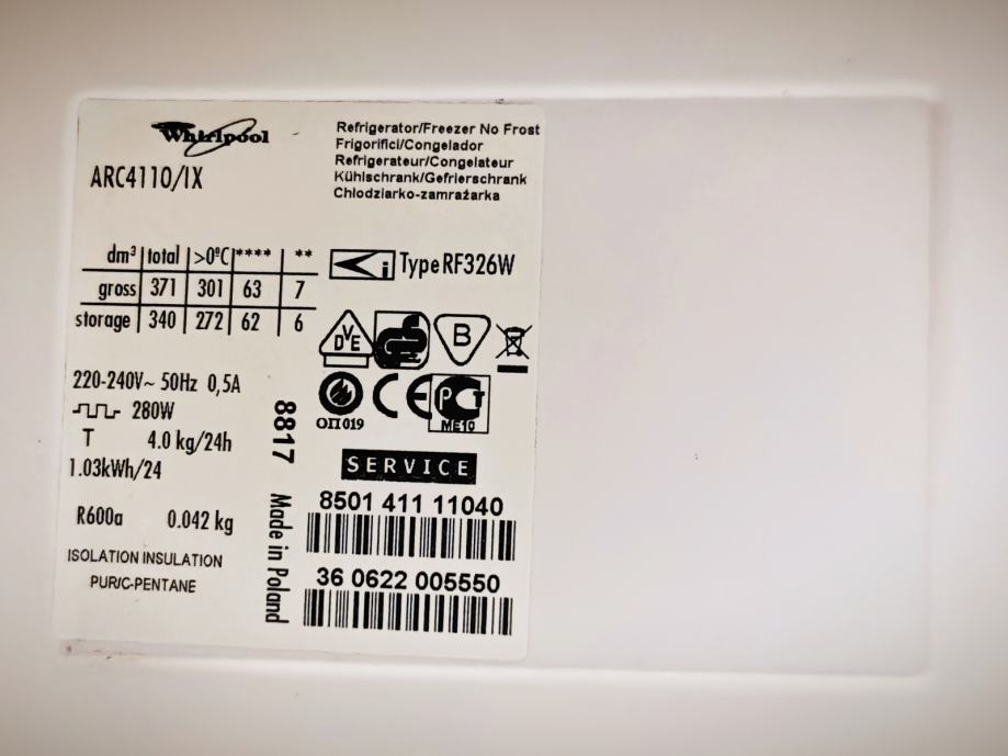 Hladilnik z zamrzovalnikom, prostornina 340l, prostornina zamrzovalnika 68l, dimenzije 168X60X60 ,
