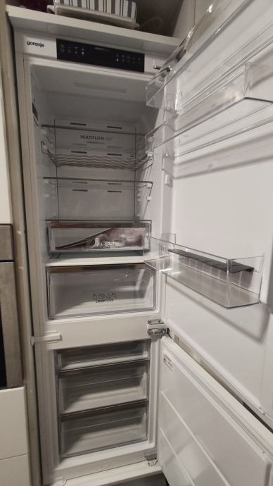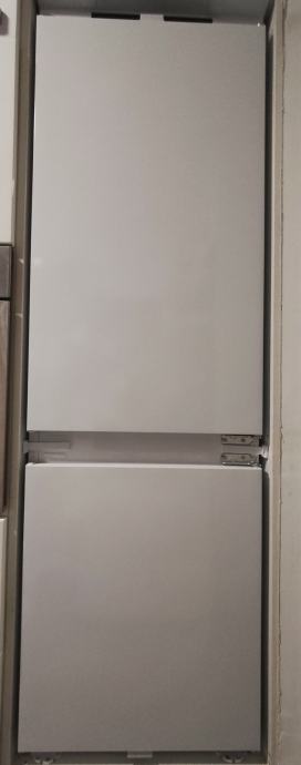 Prodam nov vgradni kombiniran hladilnik Gorenje NRKI517D61WF - prodajam zato, ker je bilo ob montaži ugotovljeno, da sistem tečajev hladilnika ni kompatibilen z našo kuhinjo. Hladilnik ima drsne tečaje, na našo kuhinjo pa paše jo škarjasti tečaji. Hladilnik je bil vstavljen v nišo, privijačen v okvir omare, tako da vračilo ne pride v poštev.