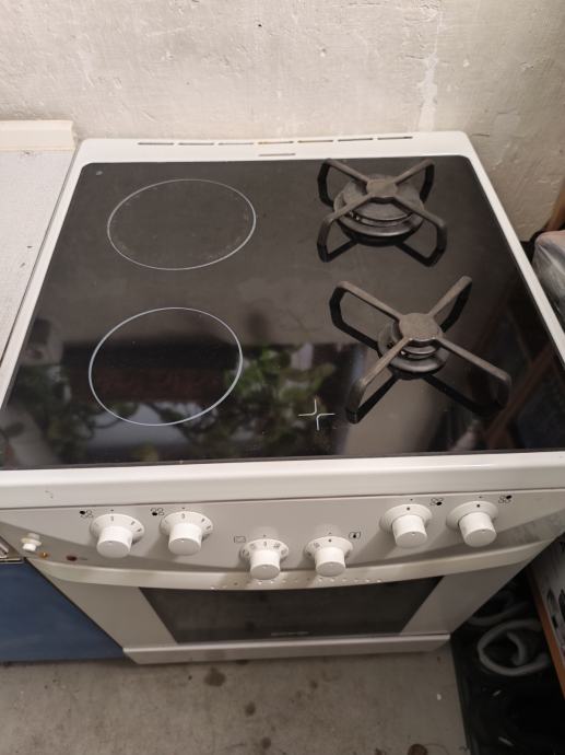 Prodam kombiniran prostostoječi štedilnik Gorenje. Štedilnik je kombiniran plin/elektrika s steklokeramično ploščo ter pečico na elektriko. Ima tudi električen vžig plinskih kuhalnikov.