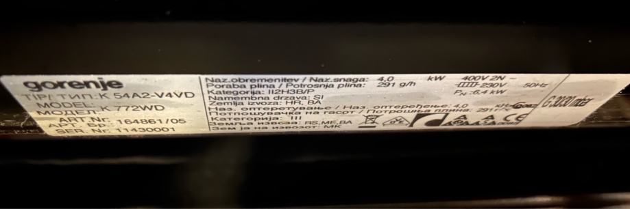 Prodam popolnoma delujoč štedilnik s pečico Gorenje (model k54a2-v4vd) z dvema električnima ploščama in dvema plinskima grelnikoma.