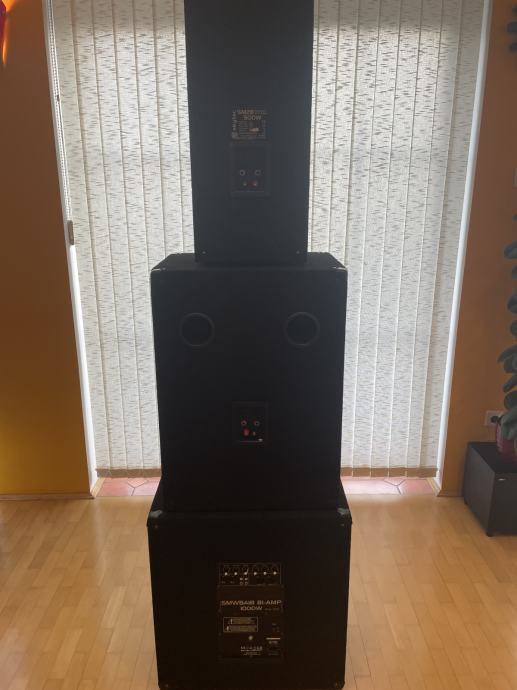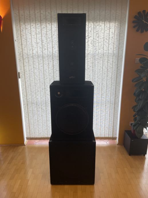 Komplet dveh stolpov skupaj ima resnično zelo lep in močan zvok, tako da je primeren tudi za večje dvorane. Uporabljen samo dvakrat, vse super delujoče, kot novo. Prodajamo, ker ga več ne potrebujemo. (Cena enega stolpa - komplet treh zvočnikov je 300 EUR).