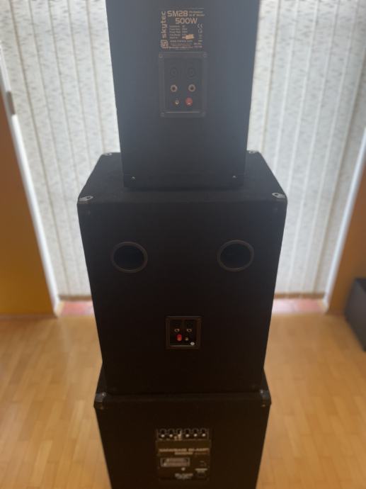 Zelo ugodno prodamo ozvočenje in sicer dva kompleta, ki sta sestavljena vsak iz treh Skytec zvočnikov.
