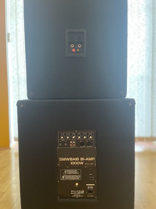 1 x velik aktivni 18 col 1000 W sub (500 W sub + 500 W sateliti), torej ima dodatno vgrajen ojačevalec za možnost priklopa dveh pasivnih satelitov 2 x 250 W ali 1 x 500W.