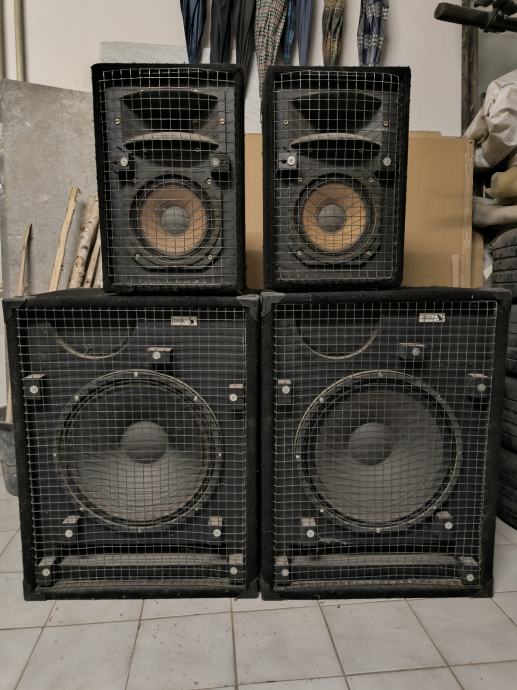 Prodam komplet zvočnikov znamke RCF jakosti 2x500W. Torej 2 nizkotonca in 2 visokotonca. Vse skupaj prodam za simbolno ceno 100€.