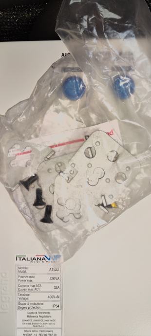Preklopnik za ročni preklop na rezervni vir električnega napajanja ob izpadu električnega omrežja. NOV, nerabljen.