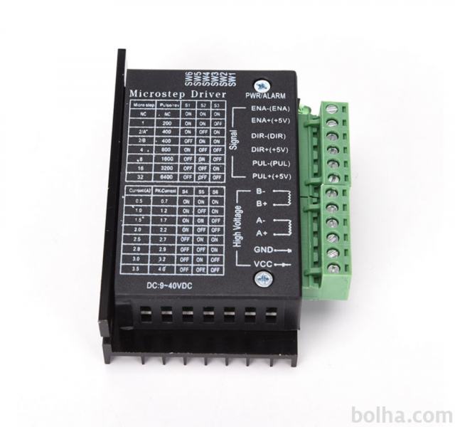 Prodam TB6600 driverje za koračni motor. Driver omogoča microstepping do 1/32, maksimalen tok 3,5 A.
