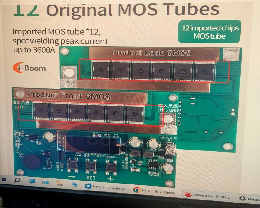 PCB modul za pulzno točkovno varjenje baterij, vhod 6.5 - 16 V, izhod do max 3600 A, za nikelj trake 0.1 - 0.3 mm, displey za nastavitev...možnost pošiljanja