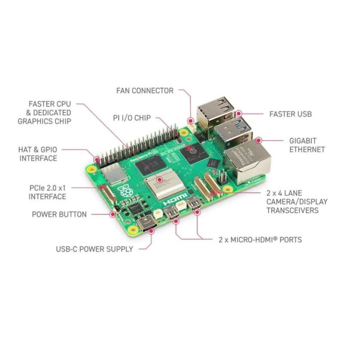 ⚡ Novi Raspberry Pi 5 prinaša izjemno zmogljivost, napredno grafiko in revolucionarne priklopne možnosti. Z najnovejšim štirijedrnim Arm Cortex-A76 procesorjem pri 2,4 GHz in kar 8 GB RAM-a je do 3× hitrejši od modela Pi 4.