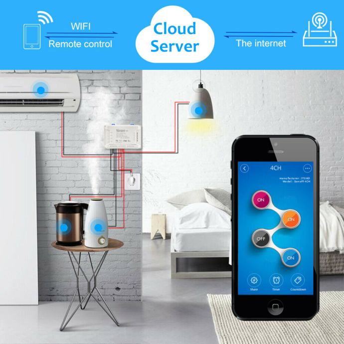 SONOFF WIFI 4 KANALNI VKLOP IZKLOP ELEKTRIČNIH NAPRAV OD KJERKOLIPO SVETU ! UŽIVAJTE V PAMETNEM ŽIVLJENJU IN NAREDITE VAŠ DOM PAMETNEJŠI !