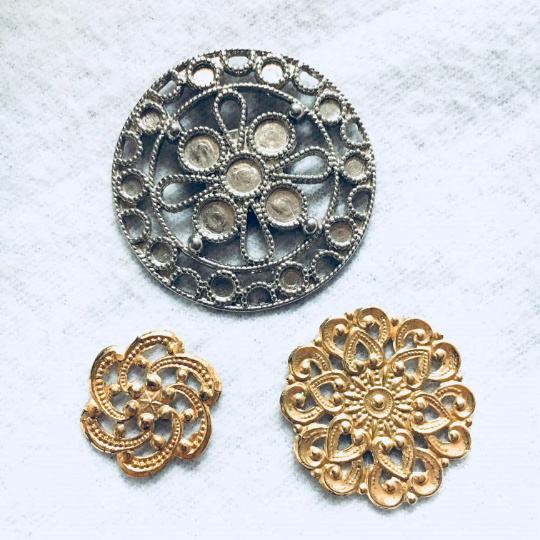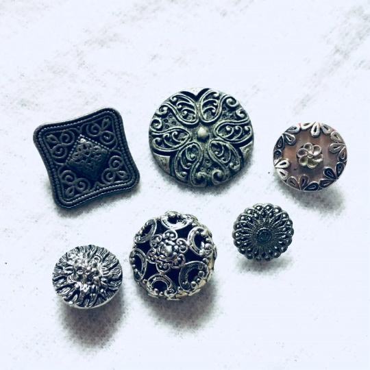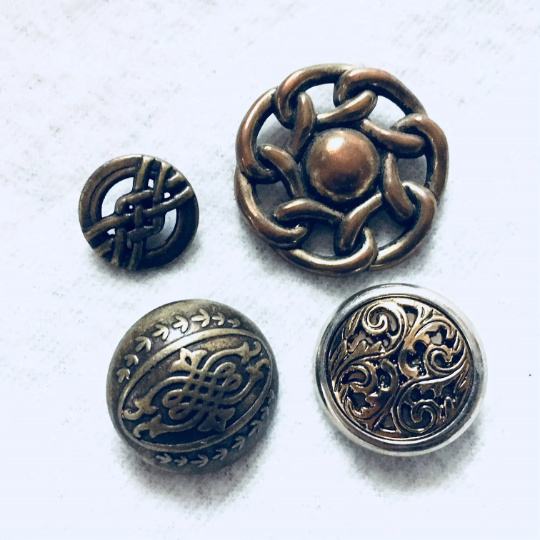 Razni starinski gumbi in dekoracije.