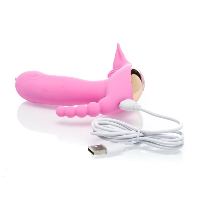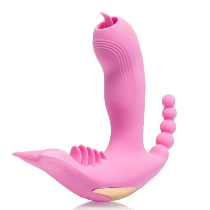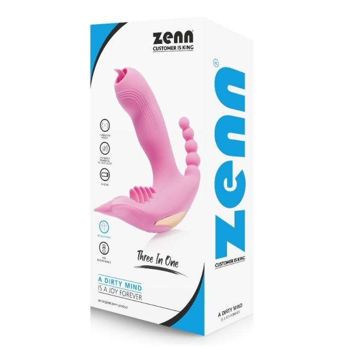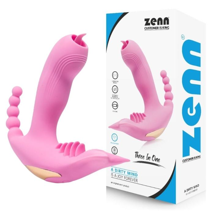 Vibrator Zenn Three In One Pink Ena igračka – trojna čutna izkušnja Vibrator Zenn Three In One Pink je zasnovan za globoko osebno raziskovanje in celostno stimulacijo. Prefinjen dizajn povezuje notranjo stimulacijo, zunanjo dražljivost in analno užitkarsko pot. Vsak njegov delček je premišljeno oblikovan, da razvaja najbolj občutljive točke telesa – od klitorisa in vagine do anusa in bradavičk. Njegova mehka tekstura iz medicinskega silikona in gibljiva oblika zagotavljata izjemno udobje in intenzivne občutke, medtem ko vibracijski jeziček v zgornjem delu poskrbi za pravo eksplozijo sladkega trepetanja. Sedem različnih vzorcev vibracij, perlast analni rep in fleksibilna oblika vam omogočajo popolnoma prilagodljivo izkušnjo – vsakokrat znova. Napaja se prek magnetnega USB polnilca in vključuje daljinski upravljalnik z ločenima gumboma za moč in menjavo vibracij. Pripravite se na igračko, ki vam bo pokazala, kaj pomeni trojna ekstaza. Kaj ga dela tako posebnega? ✓ Trojna stimulacija v enem izdelku - Istočasno draži klitoris, notranjost vagine in analno področje – za celostno čutno doživetje. ✓ Vibracijski jeziček z 7 različnimi načini - Ustvari občutek jezička, ki vas nežno, a ritmično razvaja. ✓ Ukrivljen, telesu prilagojen dizajn - Sledi obliki telesa in nudi optimalen stik s pravimi točkami. ✓ Daljinski upravljalnik z dvema funkcijskima gumboma - Ločeno vklapljanje/izklapljanje in preklapljanje med vibracijami. ✓ Perlast rep za zunanjo ali notranjo analno stimulacijo - Z nežnim vstavkom ali razburljivim potegom ob robu. ✓ Medicinski silikon brez ftalatov - Koži prijazen, neporozen in svilnato mehak na otip. ✓ Odporen proti škropljenju - Primeren za hitro čiščenje – le ne potapljajte ga v vodo. Za koga je primeren? Vibrator Zenn Three In One Pink je idealen za vse, ki si želite intenzivne in večplastne stimulacije z eno samo igračko. Odličen je za posameznice, ki želijo raziskovati vse tri ključne erogene cone, pa tudi za pare, ki želijo popestriti skupne trenutke. Za ljubiteljice klitoralne, vaginalne in analne stimulacije Za vse, ki si želijo trojno funkcionalnost v enem izdelku Za tiste, ki cenijo mehak, varen silikon in ergonomijo Za raziskovalke, ki uživajo v počasnem stopnjevanju vibracijDimenzije in tehnične lastnosti Skupna dolžina: 140 mm Vstavljiva dolžina: 100 mm Premer: 35 mm Teža: 151 g Material: medicinski silikon (brez ftalatov) Barva: roza Funkcije: 7 vzorcev vibracij, vibracijski jeziček, analni perlasti rep Napajanje: magnetno USB polnjenje Upravljanje: 2 gumba na daljincu (vklop/izklop in preklop vibracij) Vodoodpornost: odporen na škropljenje - ne potapljajte v vodo Navodila za uporabo Pred prvo uporabo izdelek napolnite z magnetnim USB kablom. Nanesite lubrikant na vodni osnovi za udobnejše drsenje. Vibrator vključite ali izključite s pritiskom na edini gumb, ki se nahaja na spodnji strani naprave. Za daljinsko upravljanje uporabite priloženi upravljalnik, ki ima dva gumba: z enim vklopite ali izklopite delovanje, z drugim preklapljate med 7 različnimi vibracijskimi načini. Uporabite vibrator za draženje klitorisa, vaginalno penetracijo, analno stimulacijo ali masažo bradavičk – popolnoma po svojih željah. Po uporabi ga temeljito očistite. Navodila za vzdrževanje Izdelek očistite po vsaki uporabi. Ker gre za elektronsko napravo, je potrebno izdelek čistiti z vlažno krpo ali namenskim čistilom za erotične pripomočke. Pazite, da vlaga ne pride v stik s polnilnimi priključki. Izdelek shranjujte na suhem mestu, saj vlaga lahko poškoduje baterijo in motor. Napravo shranjujte ločeno od drugih izdelkov iz različnih materialov, da se izognete kemijskim reakcijam. Pred shranjevanjem pustite, da se naprava popolnoma ohladi. Pretirana uporaba lahko povzroči pregrevanje. Če je naprava zelo vroča, jo izklopite in pustite, da se ohladi. Opozorila Primerno samo za odrasle osebe, 18+. Hranite izven dosega otrok. Naprave ne uporabljajte med polnjenjem. Ne uporabljajte izdelka na otečenih, vnetih predelih ali če imate poškodbe kože. Če ste noseči ali imate zdravstvene težave, se pred uporabo posvetujte z zdravnikom. Ne uporabljajte izdelka, če je poškodovan ali je opazna nepravilnost pri delovanju. Ne razstavljajte naprave in ne posegajte v elektronske komponente. Ne izpostavljajte baterije udarcem, vlagi ali neposredni sončni svetlobi. Uporabljajte le lubrikante na vodni osnovi.Proizvajalec: B&C Sales bv, De Ruijterstraat 12, 6651 ZH Druten, Nizozemska | info@zenntoys.com