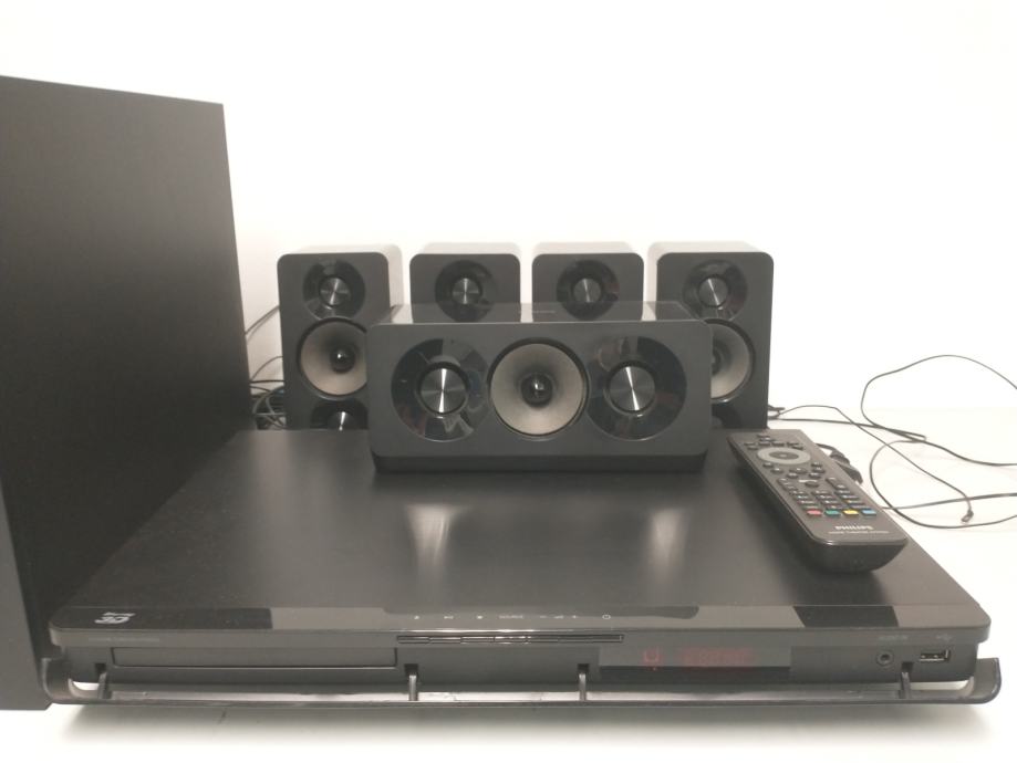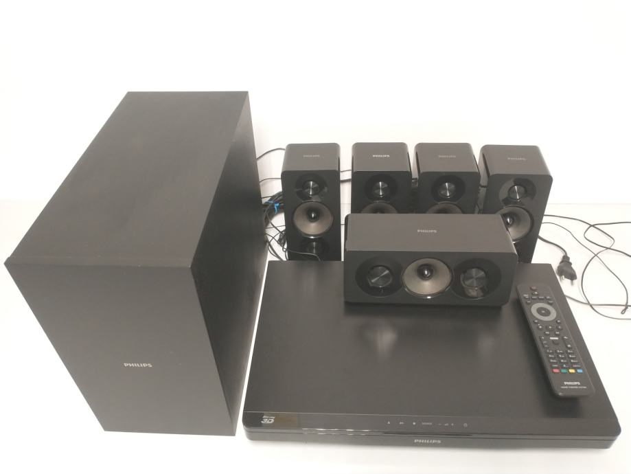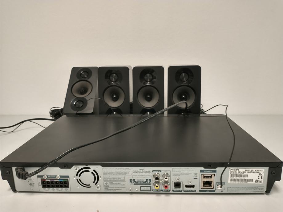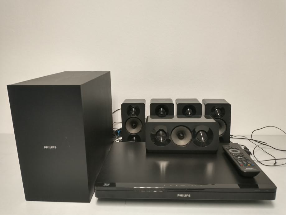 HIŠNI KINO PHILIPS 3510/12 Blu-ray 3D ..lepo ohranjen, kvaliteten zvok, vendar ne deluje en zvočnik (levi zadnji) in ne delujejo vsi piksli na prikazu stanja - konzoli.
