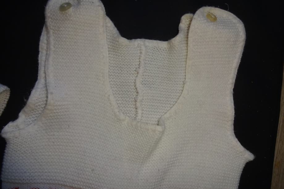 Iz sedemdesetih ali osemdesetih let. Hlače in kapa sta komplet, posebej pa še ena kapa za dojenčka.