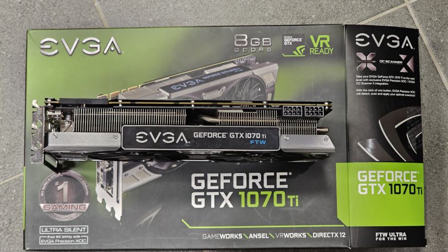 Prodam odlično ohranjeno grafično kartico EVGA GTX 1070 Ti z 8 GB GDDR5 pomnilnika. Kartica je bila uporabljena za vsakodnevno delo in občasno igranje, nikoli navijana in redno čiščena. Deluje brezhibno in je pripravljena na takojšnjo uporabo.
