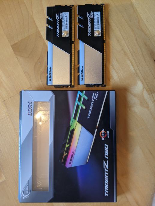 Prodajam G.Skill Trident Z Neo 2X16GB RAM komplet za DDR4 matične plošče. Kompatibilen z Ryzen AM4 in Intel platformami. Omogoča konfiguracijo RGB osvetlitev in animacij.