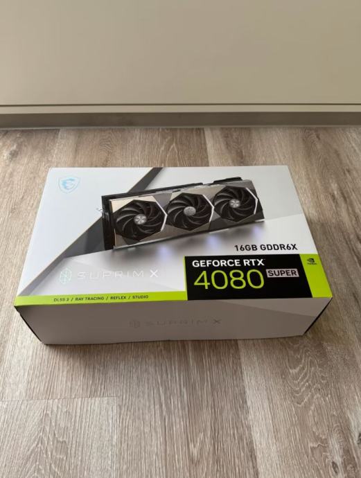 Prodajam MSI RTX 4080 Super Suprim X 16 GB. Kupljena januarja 2025, z originalnim računom — garancija še dolgo velja. Kartico sem uporabljal previdno, deluje tiho, brez pregrevanja ali coil whina. Preizkušena je bila in deluje brez napak. Vizualno skoraj kot nova, brez poškodb ali sledi uporabe. V paketu originalna embalaža in dodatna oprema. Možen osebni prevzem ali dostava.