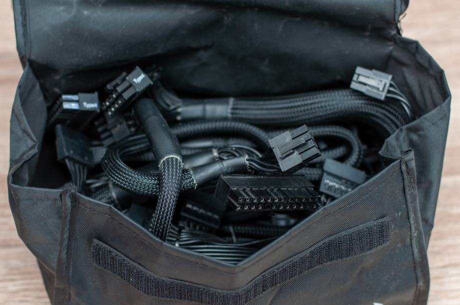 - Vključeni kabli: Priloženi so vsi potrebni modularni kabli (ATX, EPS za CPU, PCIe za grafične kartice, SATA, Molex).